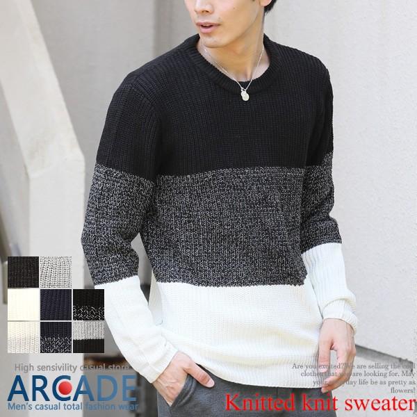 楽天市場 ボーダー柄ニットトップス クルーネックニット メンズ ニットセーター メンズセーター ニット セーター プルオーバー トップス クルーネック 配色 秋 冬 冬物 冬服 送料無料 福見る店